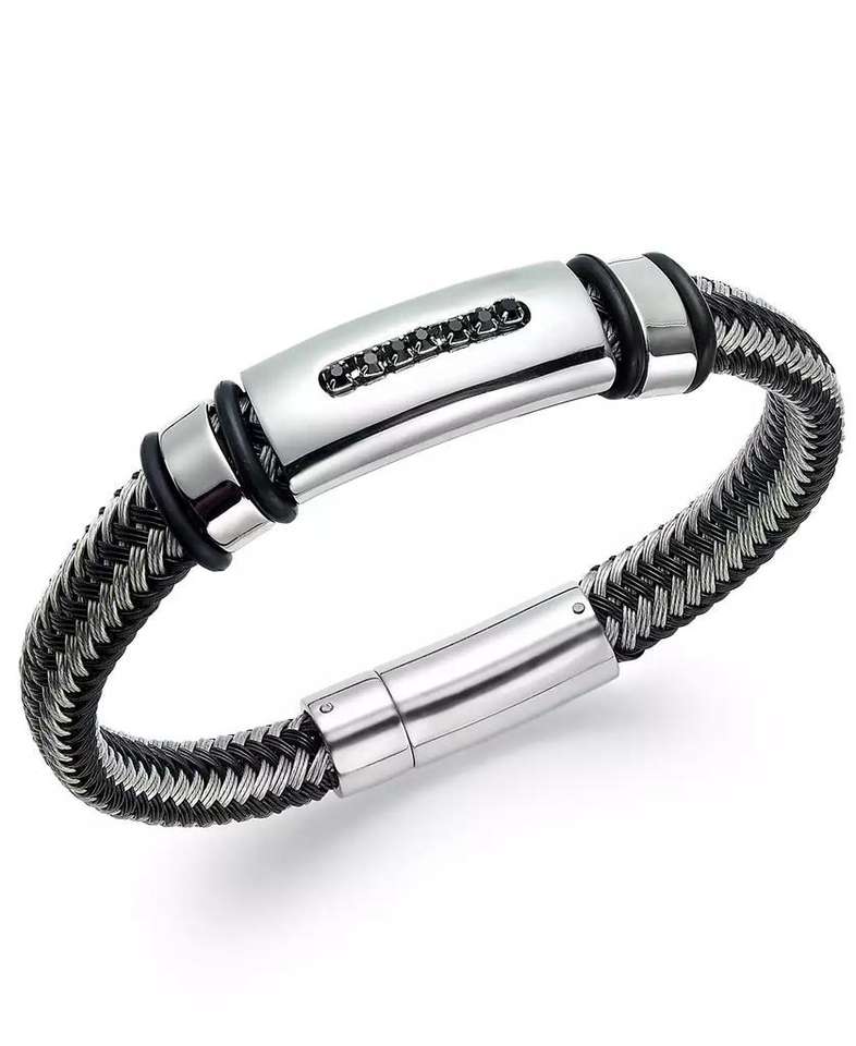 Bracciale uomo diamante nero in Nylon e acciaio inox (1/10 ct. T. w.) | Del primato