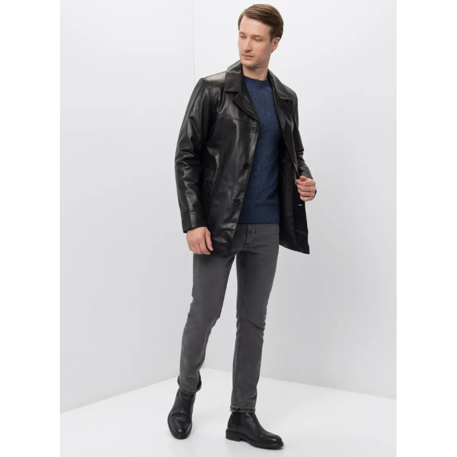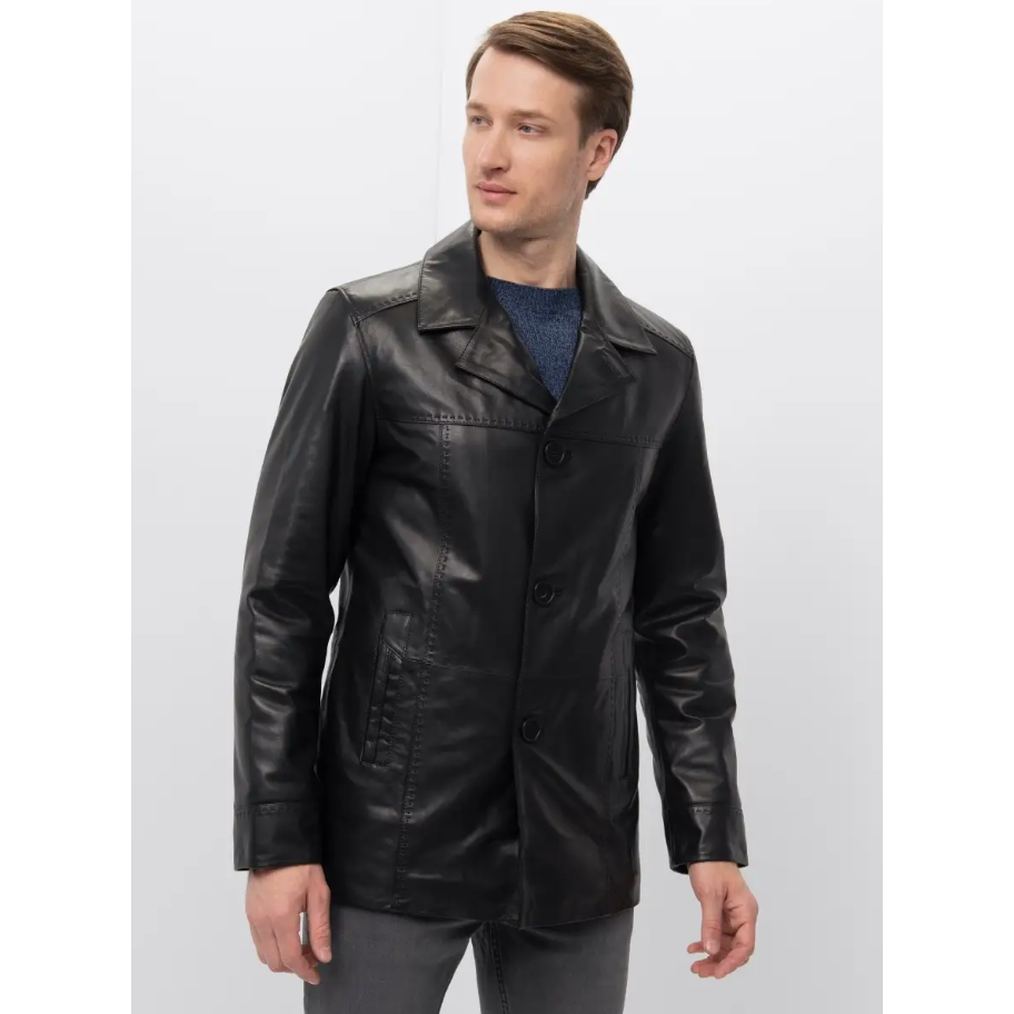 Cappotto in pelle di agnello nero da uomo 100% pelle genuina fatto a mano a Istanbul, colletto a revers, chiusura a tre bottoni,