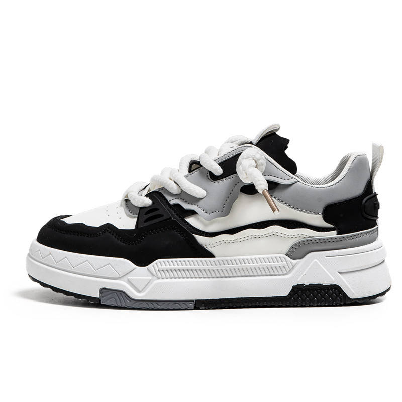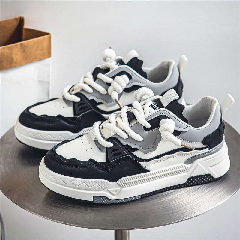 Men's Black White Gray Casual Sneakers - Chunky Sole, Thick Lace-Up Design, Stylish Trendy Shoes for Men's Fashion Outfits
