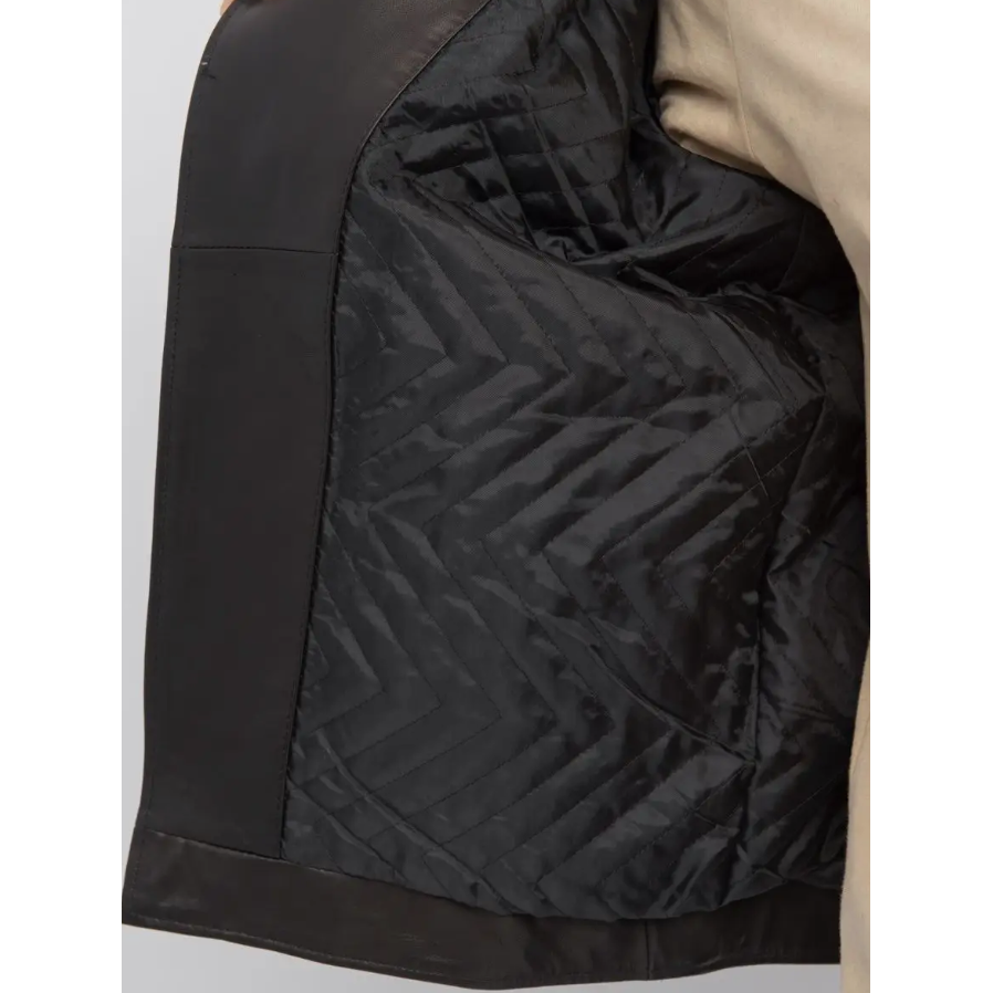 Men’s Bomber Jacket – Black Lambskin Leather, Slim Fit, Chest Zip Pocket, Short Collar