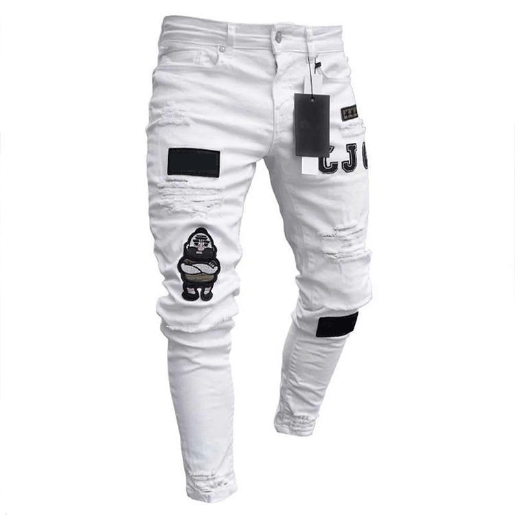 Jeans da Uomo a Matita con Strappi Pantaloni Casual Sottili in Denim Stile Classico Cowboy per Ragazzo Vestibilità Skinny e Aderente Effetto Consumato
