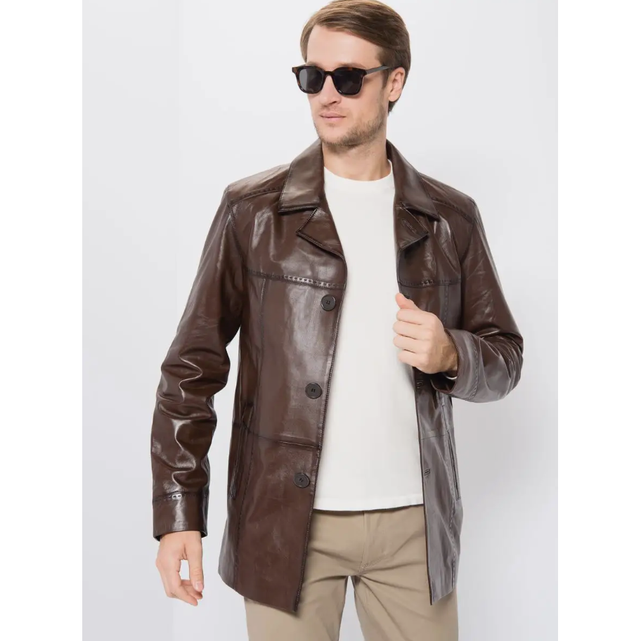 Brown Button-Up Lambskin Coat for Men – Structured Outerwear, Modern Tailored Fit