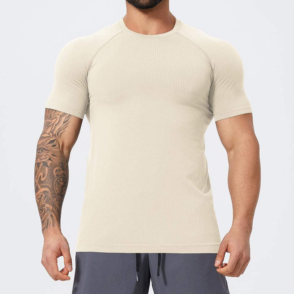 Men's Casual Athletic T-Shirt Breathable Quick Dry Light Weight Seamless Slim Fit Short Sleeve Logo Print Solid Running Shirt