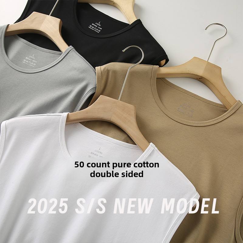 Men's Casual Summer Vest Three-Proof Pure Cotton New Anti-Stain Tank Top Wide Shoulder with Base Sleeveless Short Length T-Shirt