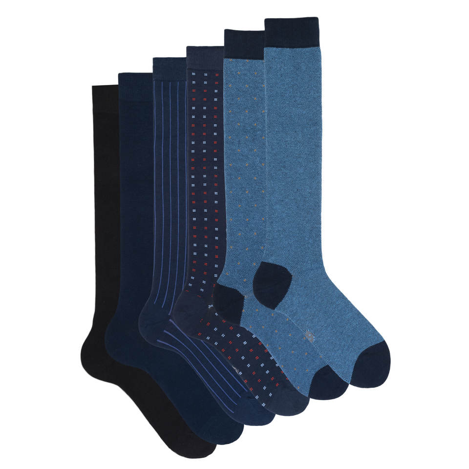Men's Classic Blue Warm Cotton Socks 6 Pairs in Gift Box Daily Spandex Polyester One Size Disposable Bottom Logo Winter Season