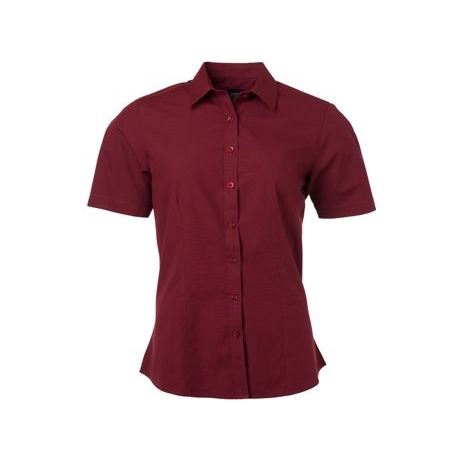 Camicia da Donna a Maniche Corte in Popeline - Camicia classica in tessuto misto facile da curare
