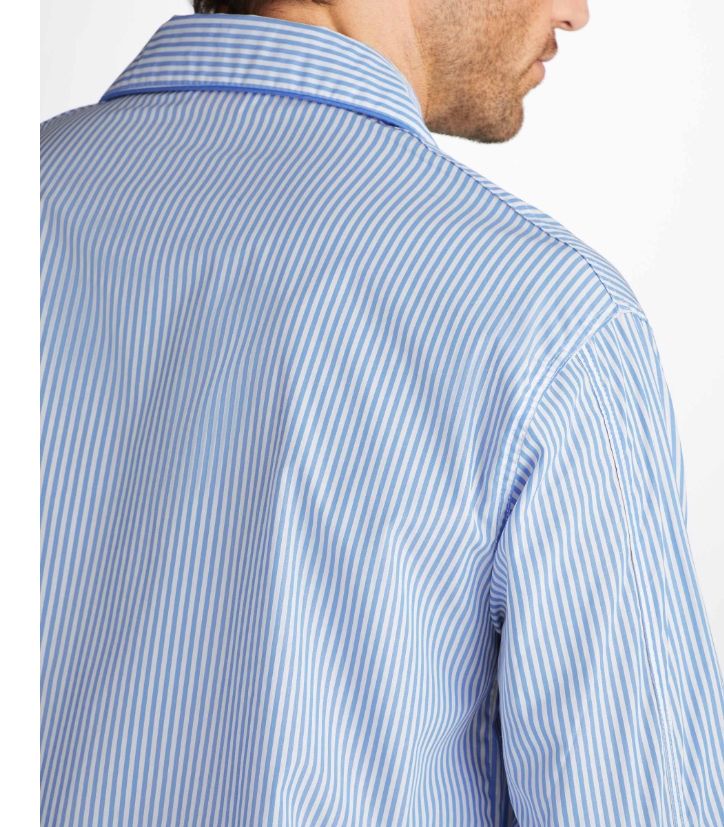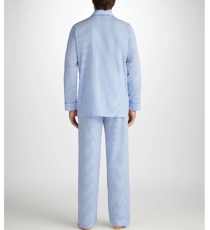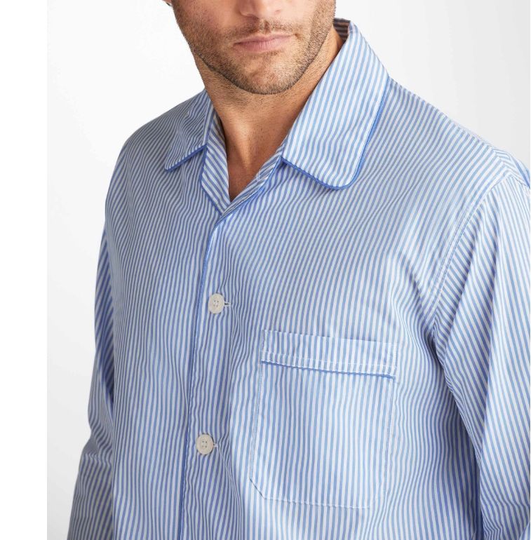 Pigiama da uomo comodo in tessuto traspirante tinto a tutta lunghezza aperto con motivo a righe per la primavera autunno inverno
