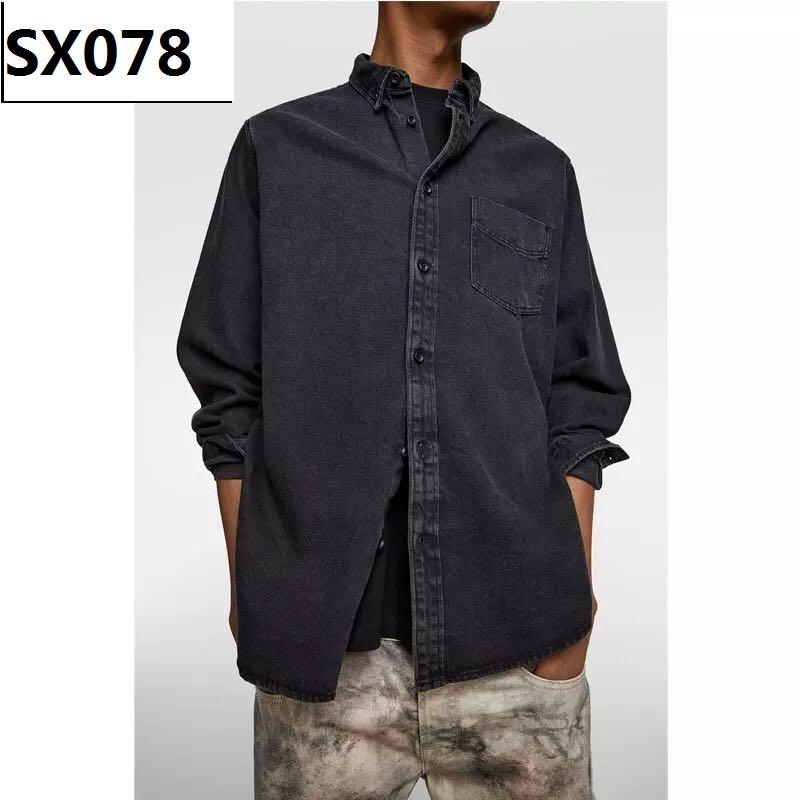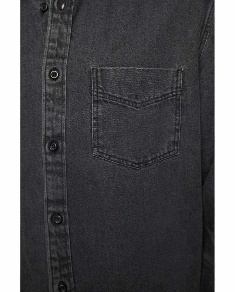 Camicia da uomo in cotone nero Denim lavato