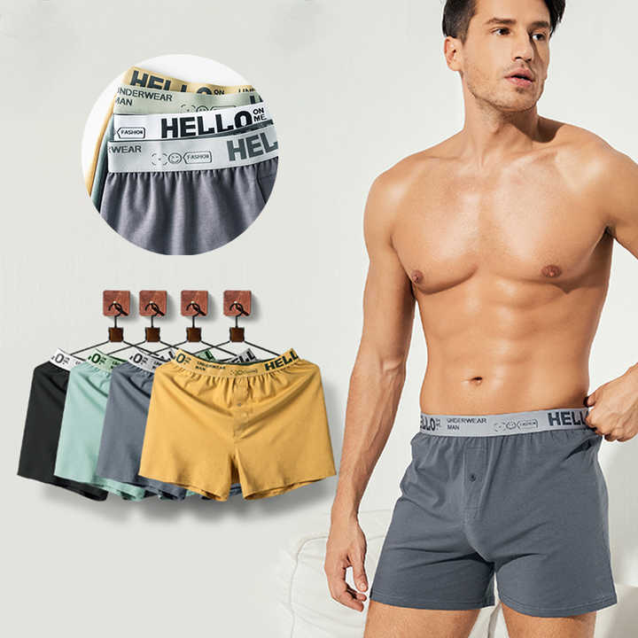 Boxer da Uomo in Cotone con Chiusura a Bottoni, Tasca Frontale, Traspiranti, Comodi, Tinta Unita, Fascia in Vita Personalizzata con Jacquard