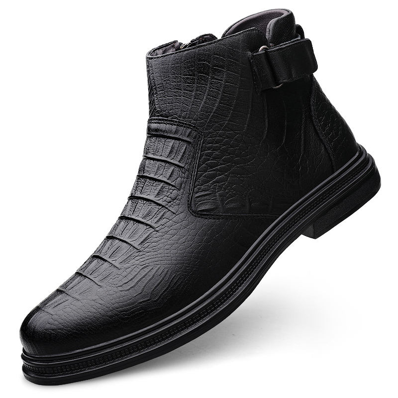 Xiamen Runwushi Stivaletto Chelsea uomo western in pelle bovina alto con zip, suola gomma/PU, antiscivolo, taglie 38-46, 1 paio