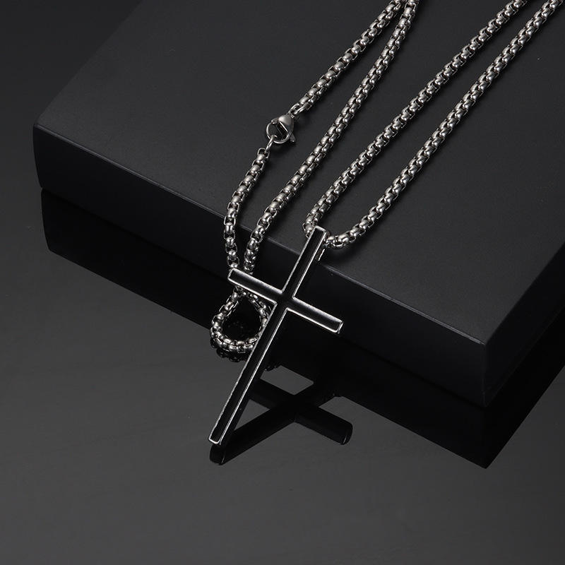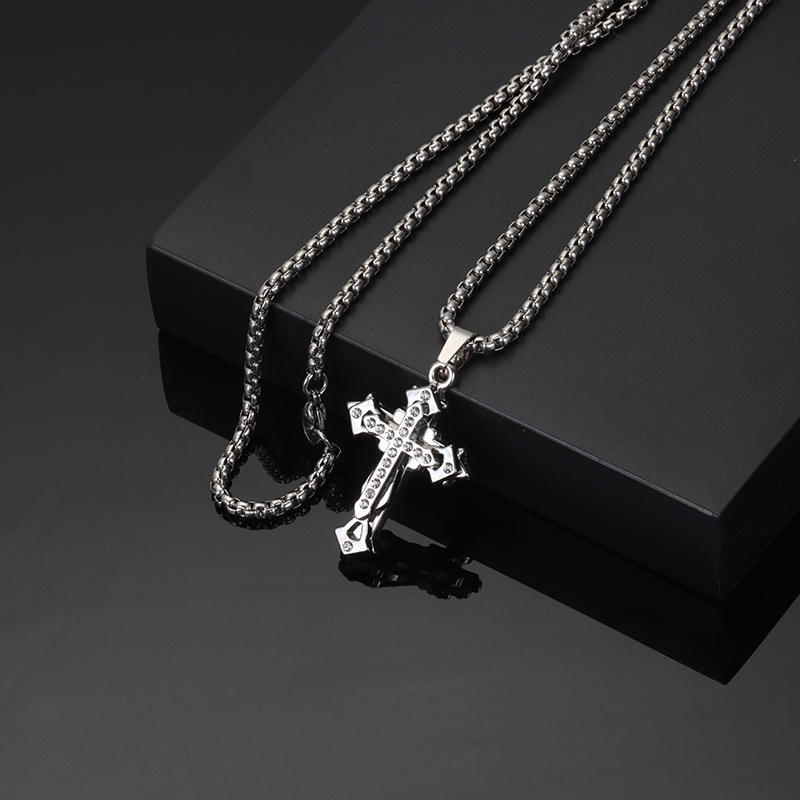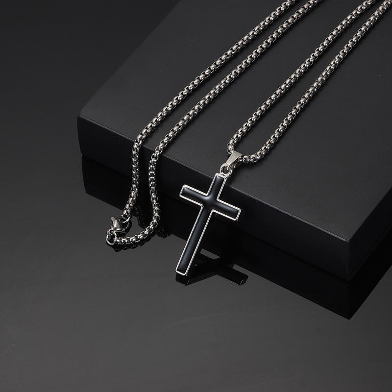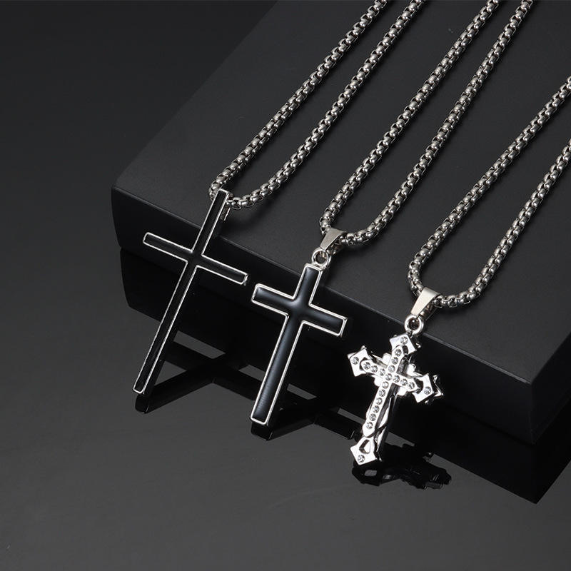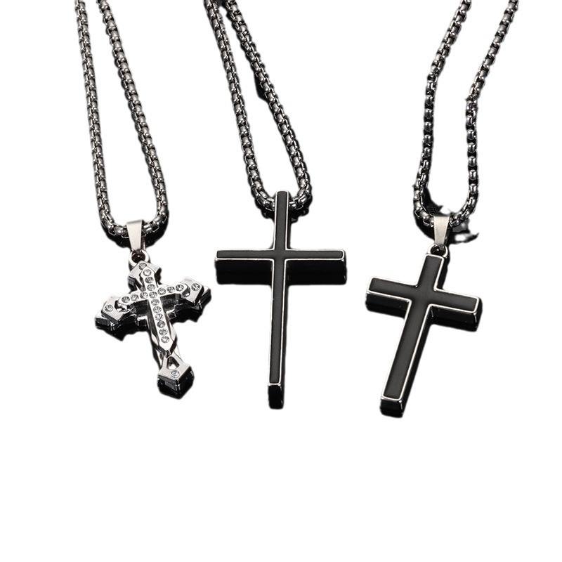 Collana incrociata da uomo Hip-Hop stile Street personalità religiosa nera croce tre strati catena maglione acciaio inossidabile