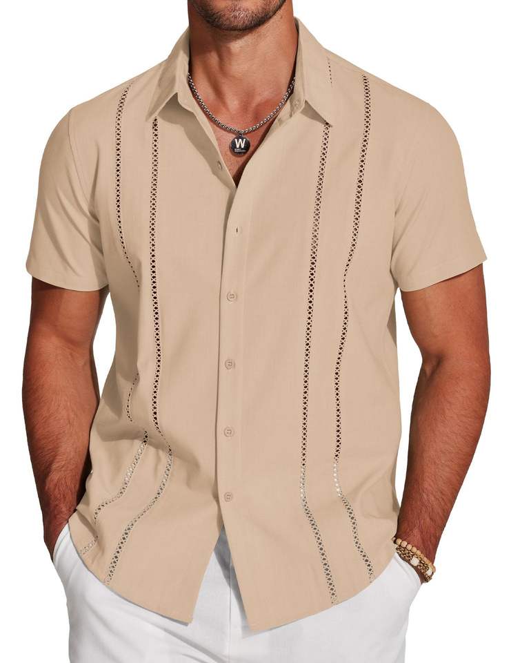 Men's Cuban Guayabera Shirt Short Sleeve Button Down Shirts High Quality Casual Summer Beach Linen Shirts for Men