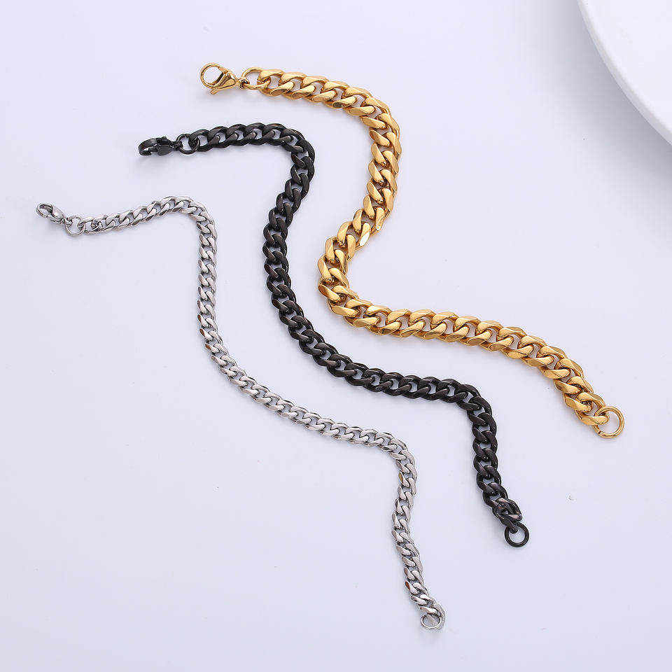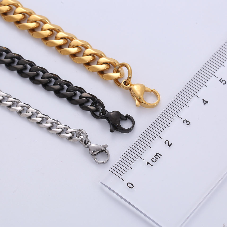 Men's Cuban Link Bracelet with Gold Plating Stainless Steel Silver Black Chain for Anniversaries