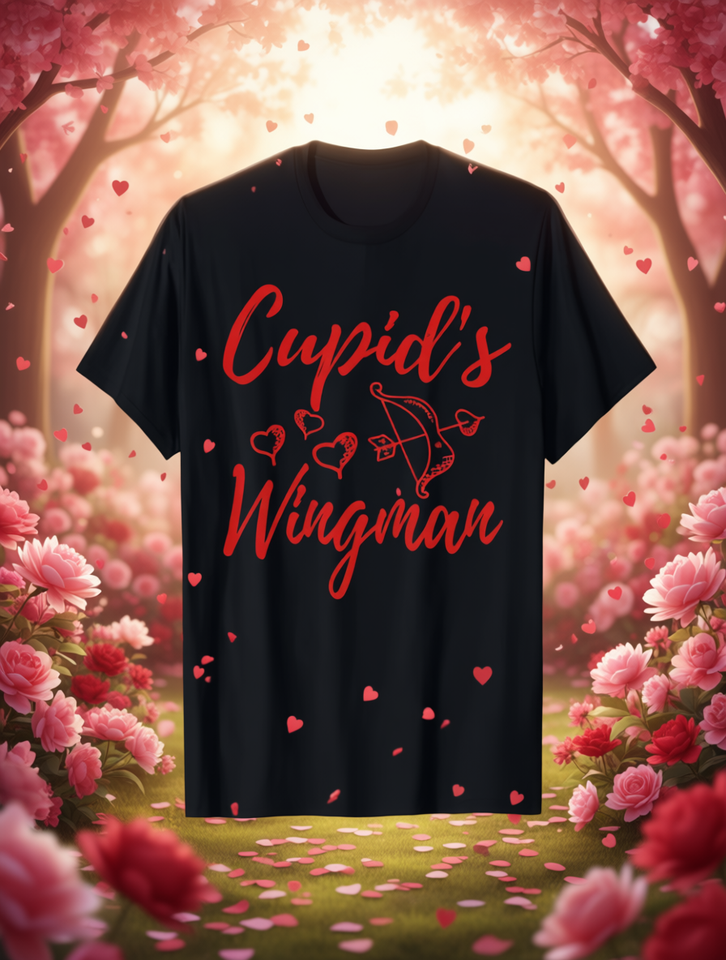 Men's Cupid's Wingman Valentine's T-Shirt 100% Cotton Short Sleeve Red Hearts Arrow Print Casual O-Neck Regular Fit