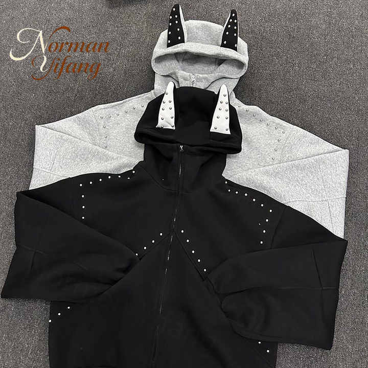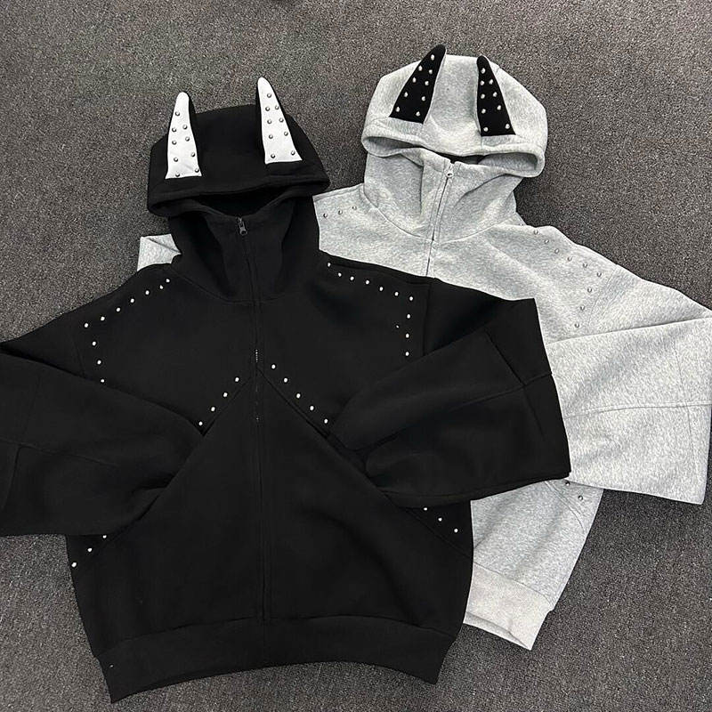 Felpa con Cappuccio Personalizzata da Uomo con Patchwork Borchiato Casual e Alla Moda Disponibile in Vari Colori e Loghi