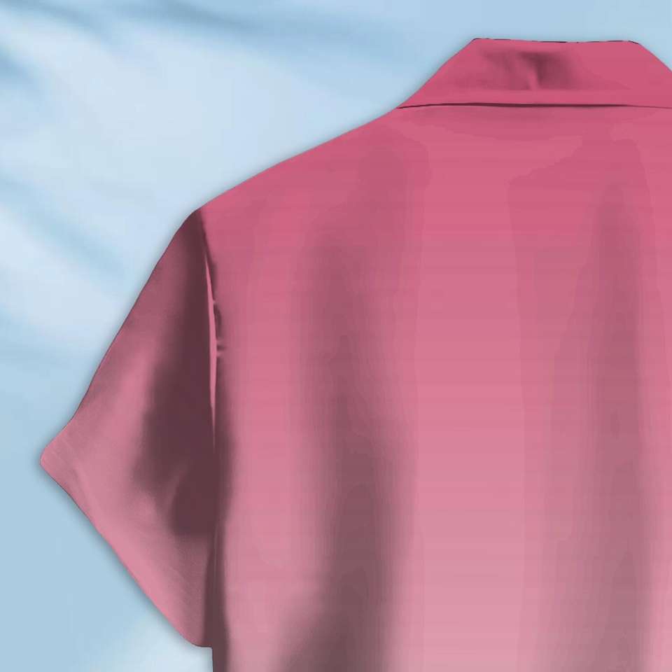 Camicia da uomo personalizzata con motivo - Camicia stampata a getto d'inchiostro rosa sfumato, vestibilità ampia, tessuto morbido, adatta per l'abbigliamento estivo
