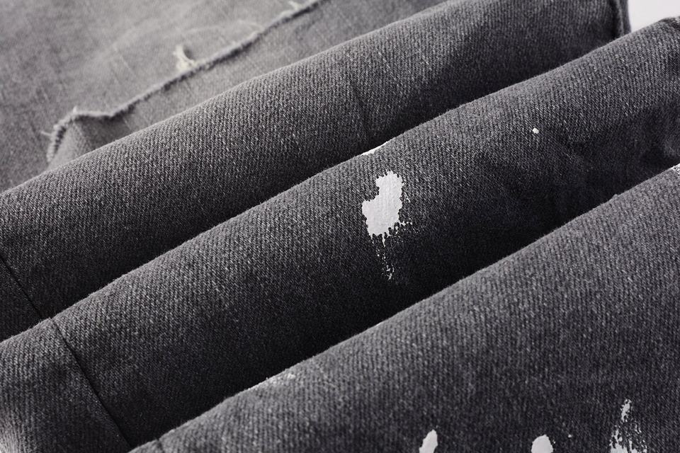 Jeans Neri Strappati da Uomo, Design Distressed, Vestibilità Regolare, Casual, Invernali, Lavati, per Motociclisti