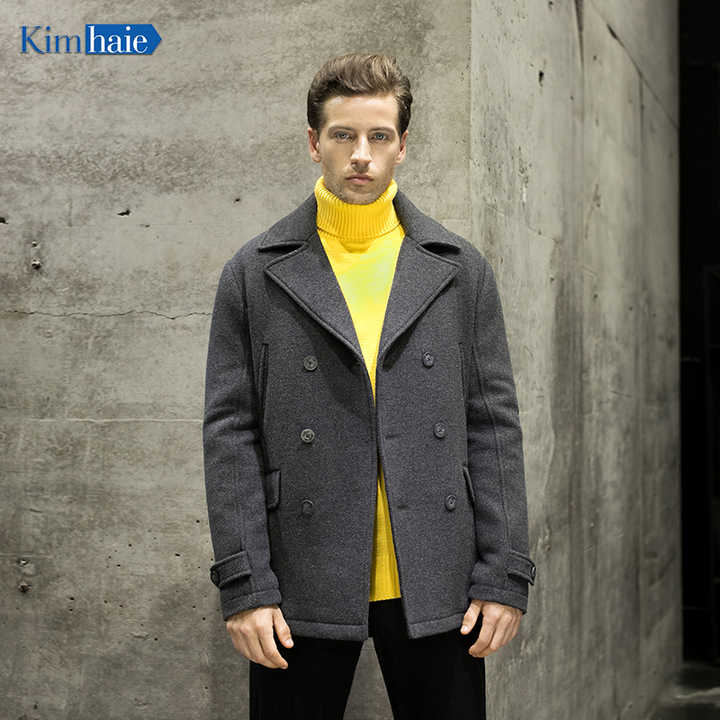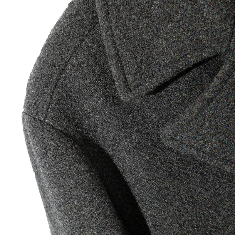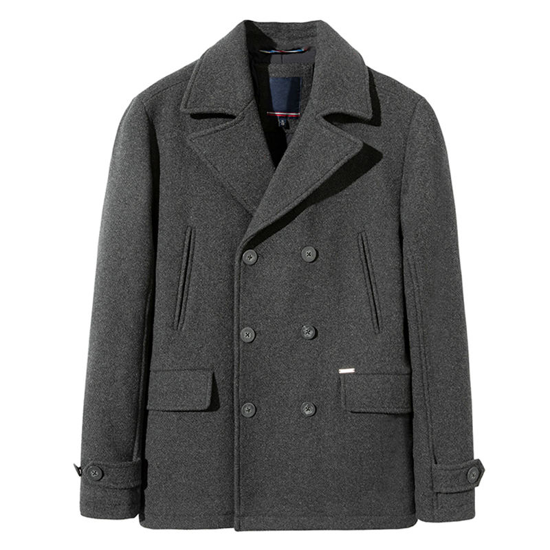 Men's Double-Breasted Grey Wool Peacoat Winter Coat and Trench Coat Outwear Plus Size Long Warm Overcoat Finished Regular