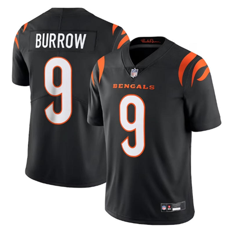 Cincinnati Bengals in rilievo da uomo # Maglia da gioco nera di Joe Burrow n. 9, maglia da gioco alternativa arancione