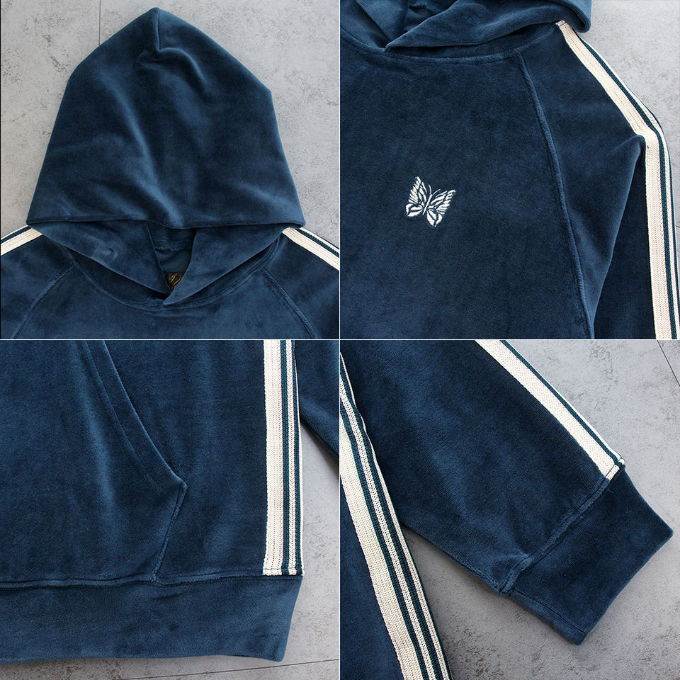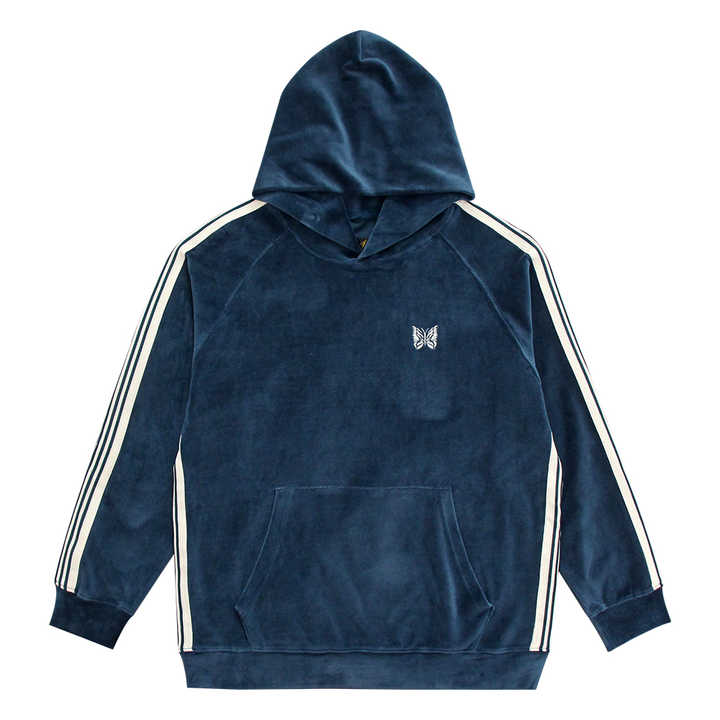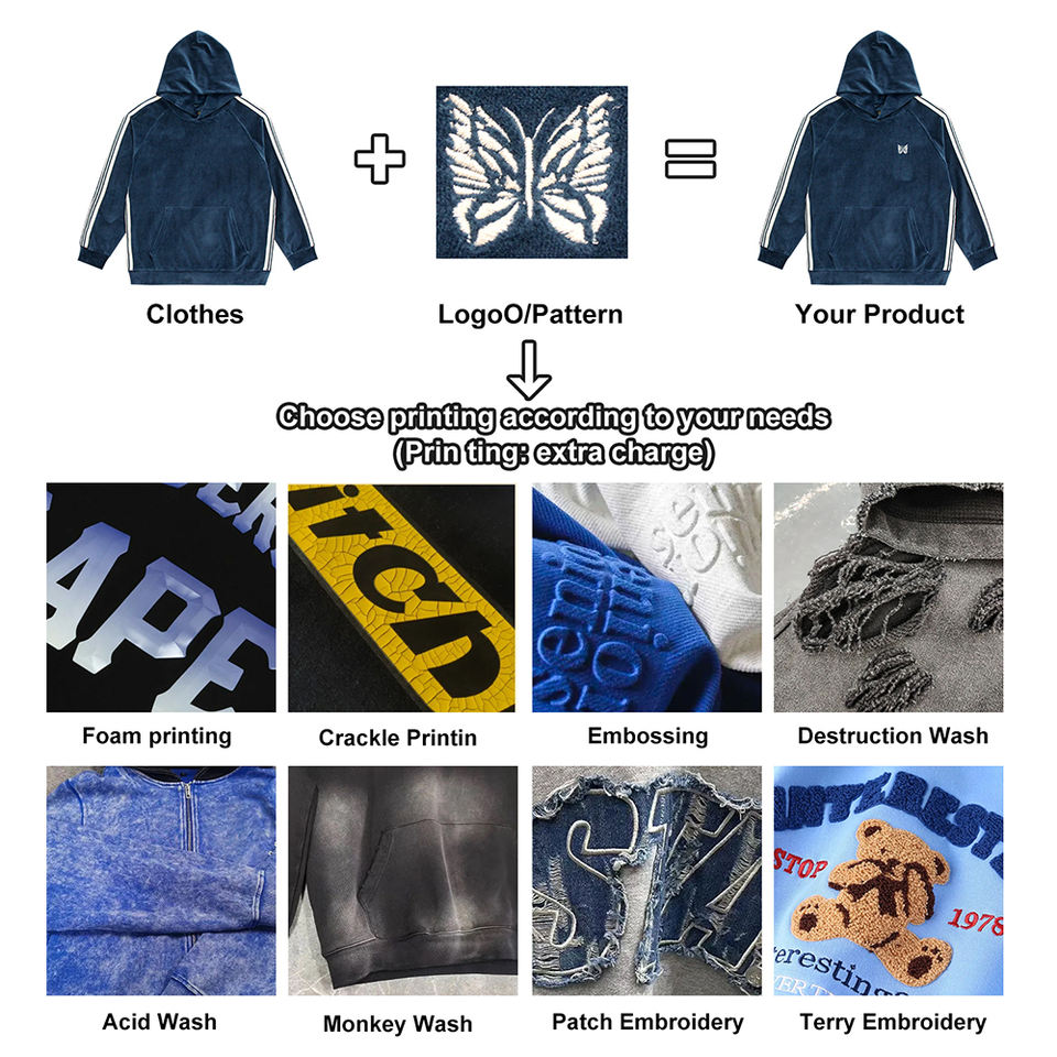 Felpa con Cappuccio Oversize da Uomo Ricamata 100% Cotone Alla Moda Blu con Maniche a Righe in Velluto Comoda Casual Invernale