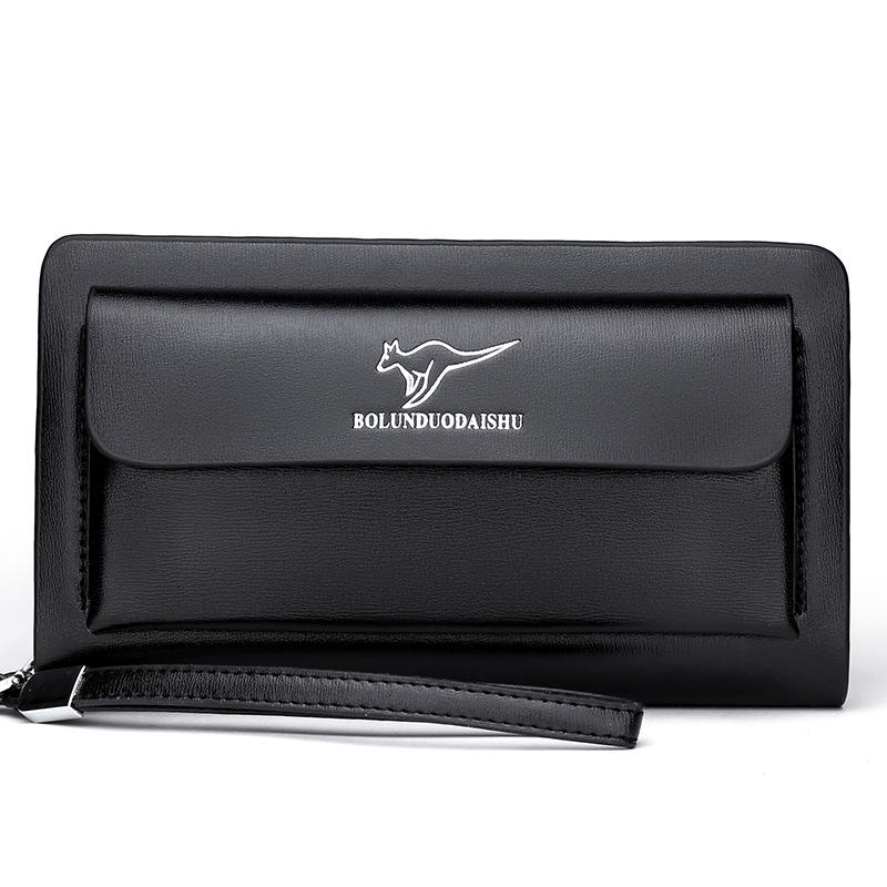 Pochette da Uomo alla Moda in PU con Doppia Cerniera Borsa Portacellulare di Grande Capacità Vendita all'Ingrosso Transfrontaliera