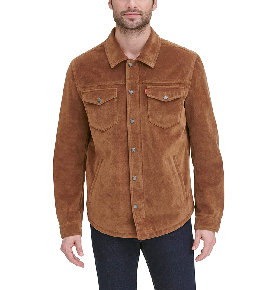 Camicetta da uomo in ecopelle con colletto abbottonato