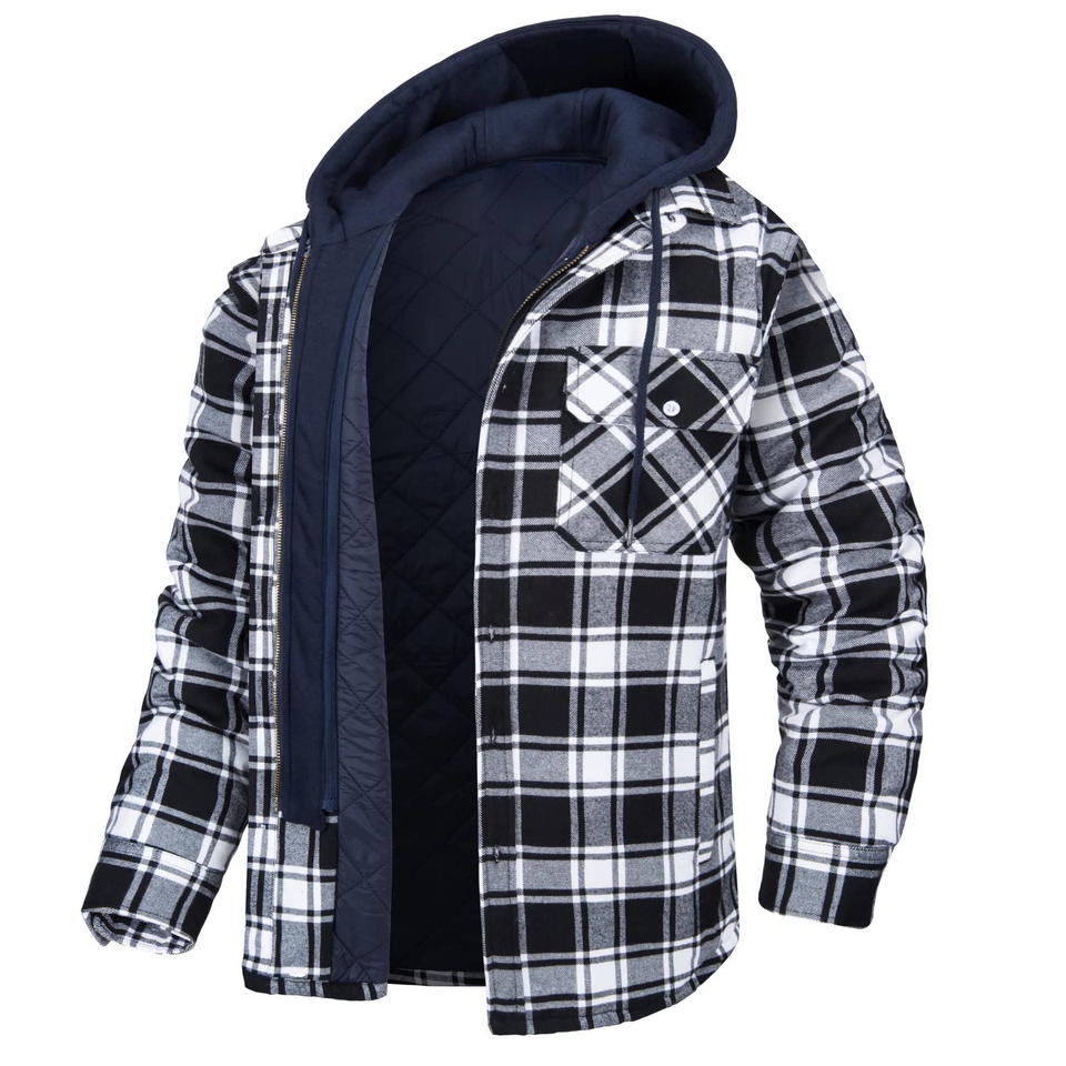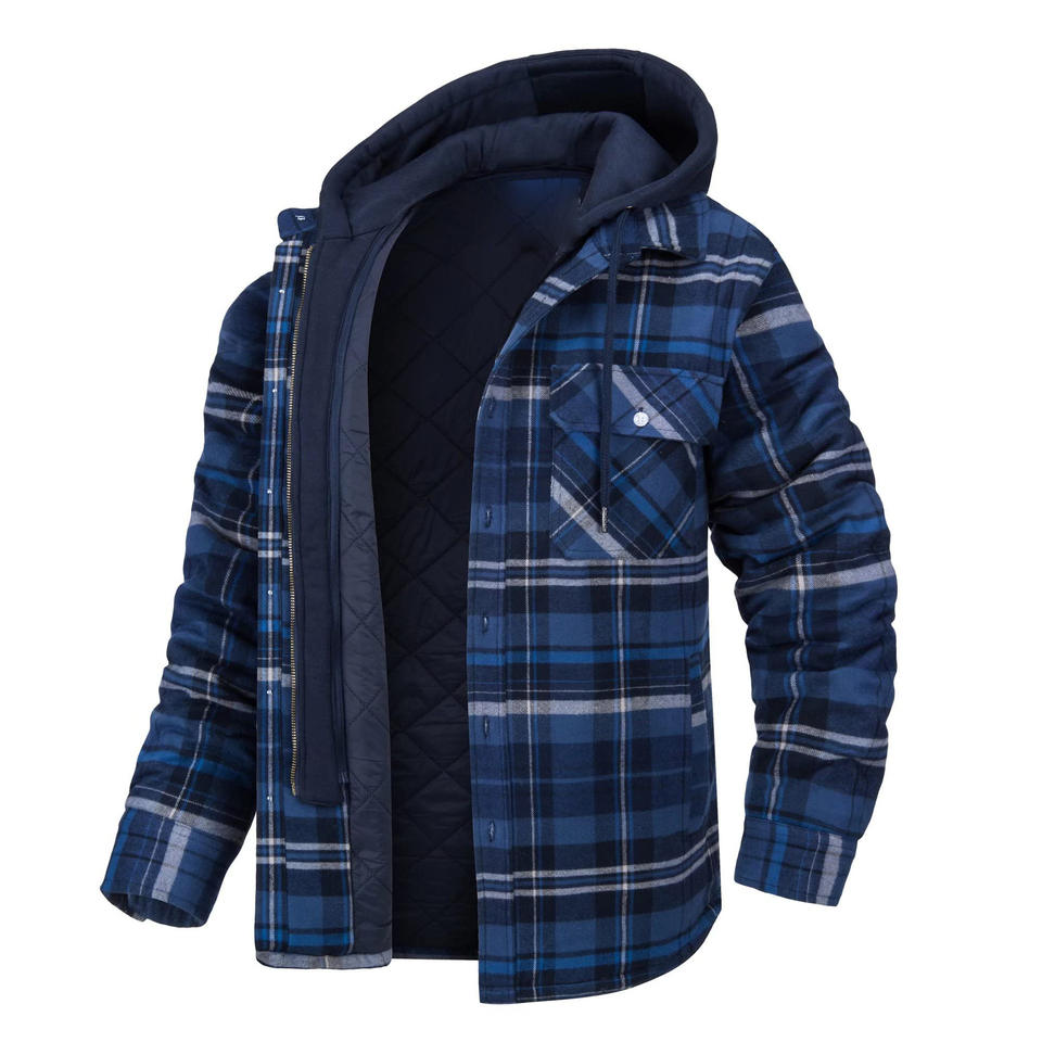 Camicia Giacca in Flanella da Uomo con Cappuccio Rimovibile, Cappotto Invernale Trapuntato a Quadri, Felpa Spessa con Cappuccio, Camicia in Pile da Uomo