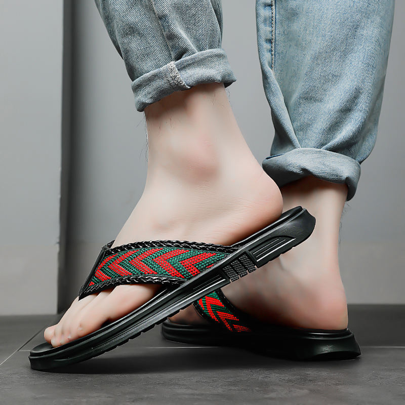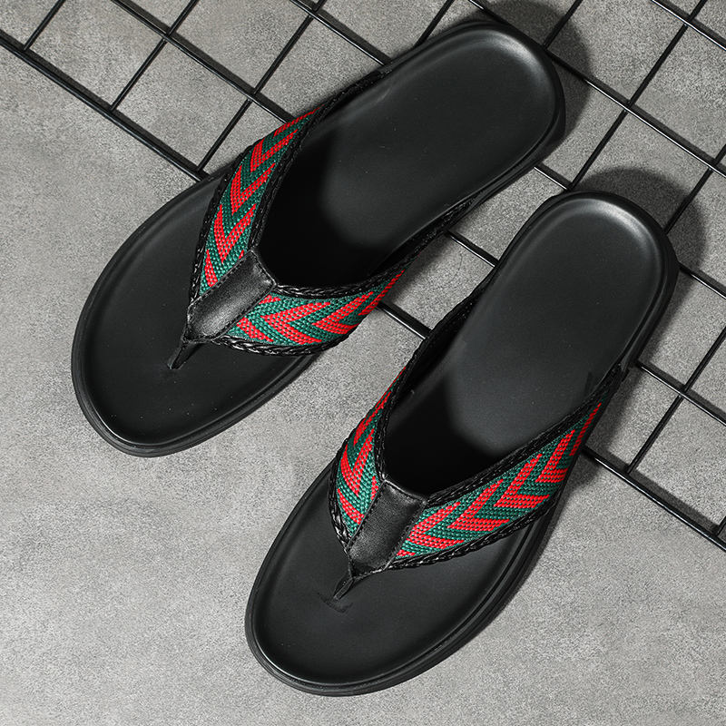 Men's Flip Flops Sandals Zoris Slippers Outdoor Walking Hiking Beach Shoes Sport Embossed Cow Genuine Leather Low-top Handmade