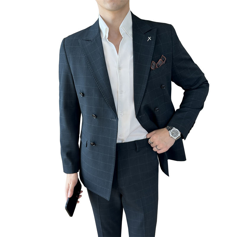 Completo Formale da Uomo con Blazer e Pantaloni Doppiopetto, Abito da Cerimonia in 3 Colori, Stile Business con Chiusura a Zip