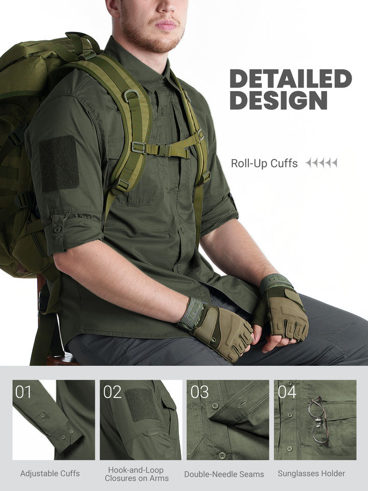 Camicia Casual da Uomo a Maniche Lunghe in Tessuto Elasticizzato Traspirante Poliestere/Cotone Twill per Pesca, Caccia ed Escursionismo
