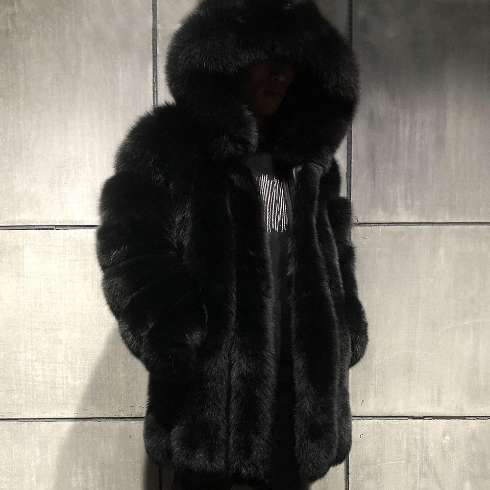 Giacche di pelliccia da uomo per uomo inverno capispalla con cappuccio cappotto lungo in pelliccia