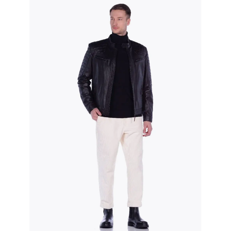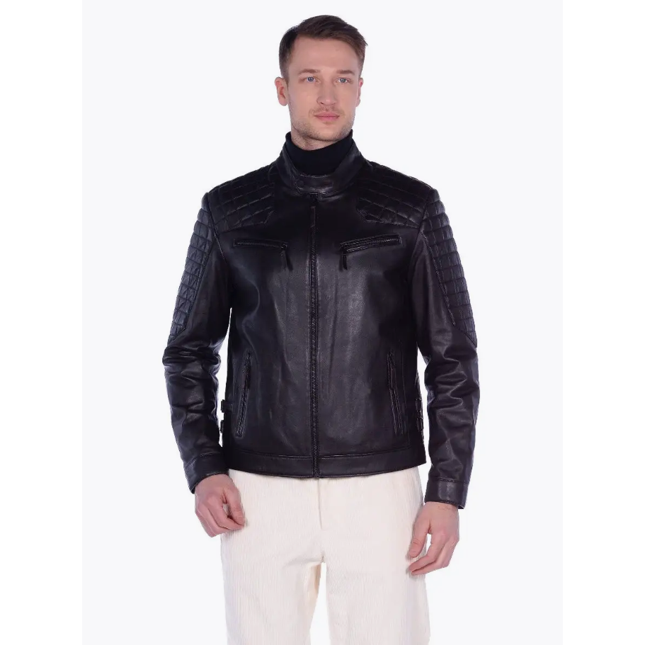 Men's Genuine Lambskin Black Leather Jacket Quilted Shoulders & Sleeves Biker Style XS Size Wholesale & Custom Orders