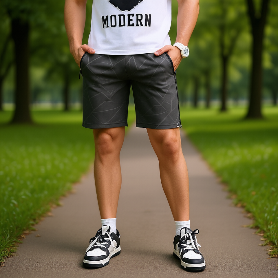 Pantaloncini Sportivi da Uomo con Motivo Geometrico, Tasche con Cerniera e Lacci, Traspiranti 100% Poliestere, Casual, Vita Media con Coulisse