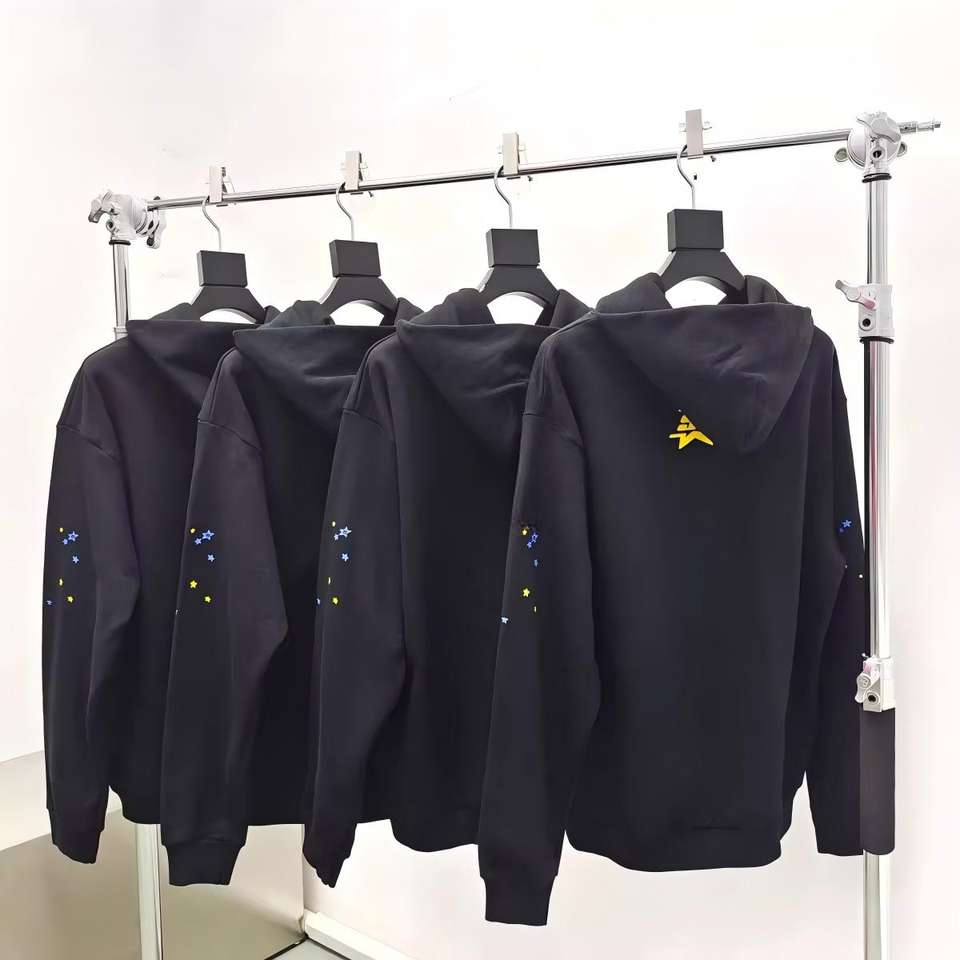 Felpa con Cappuccio da Uomo con Stampa Geometrica Nera e Rosa, Stile Gotico Streetwear, 100% Cotone Pesante