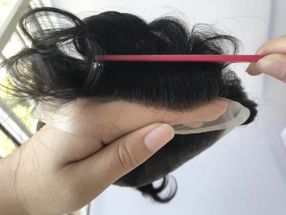 Bello sacchetto del PVC. Imballaggio Standard, come al solito, o secondo il vostro requisito per il 100% dei capelli umani naturali linea sottile uomini toupee.