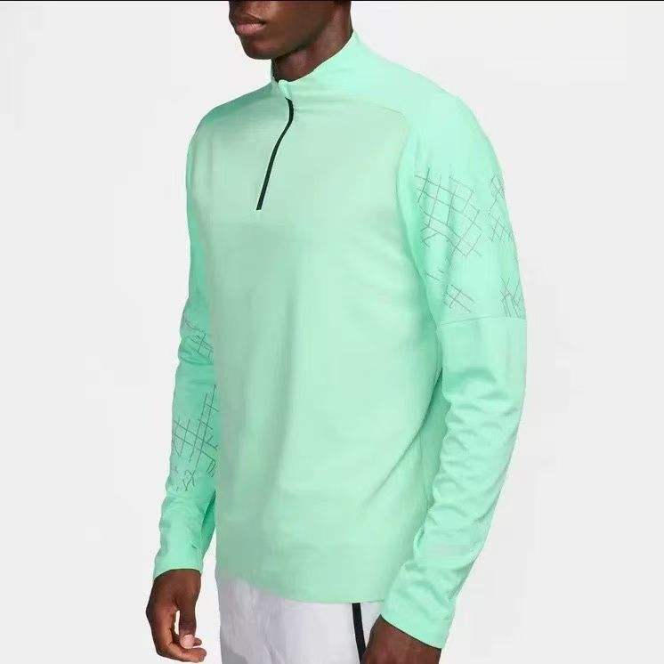 Giacca sportiva mezza zip per uomo, protezione solare, asciugatura rapida, maniche lunghe, colletto alto, traspirante 100% poliestere