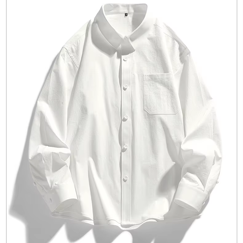 Men's Heavyweight Cotton Long Sleeve Shirt - Spring Relaxed Fit White Casual Shirt Jacket