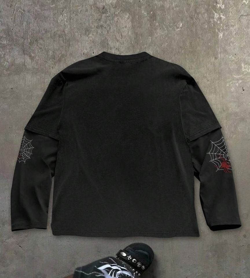 Men's Heavyweight Long Sleeve T-Shirt Oversized Boxy Fit with Embroidery Rhinestone Glitter Custom Logo Printed Bulk Black