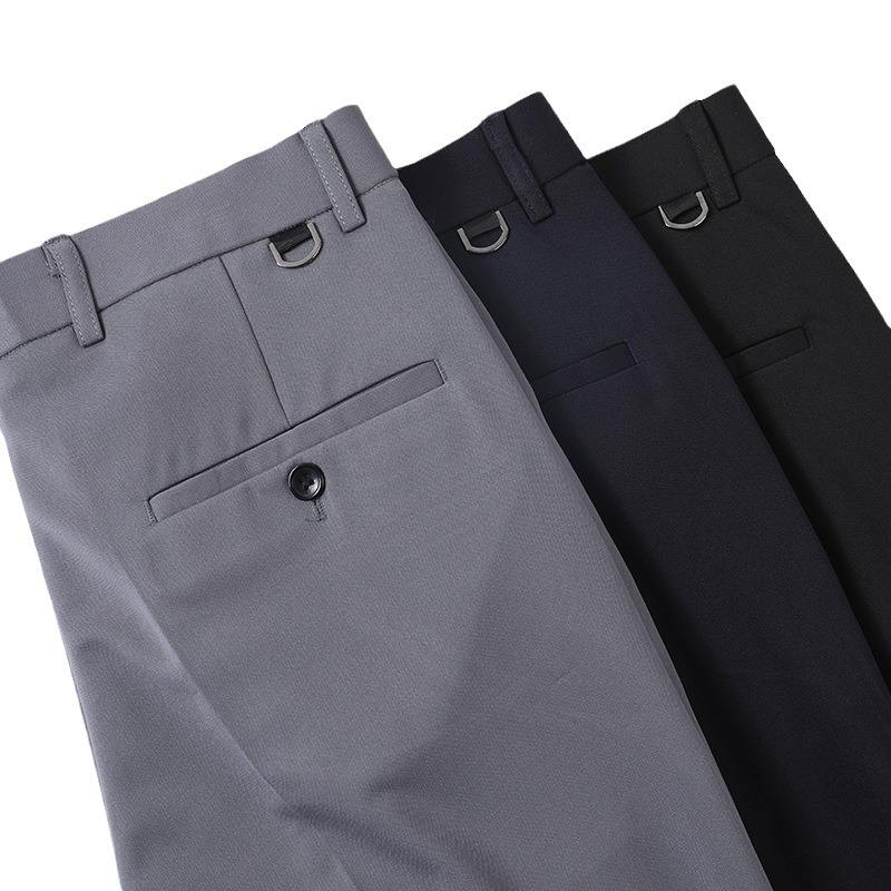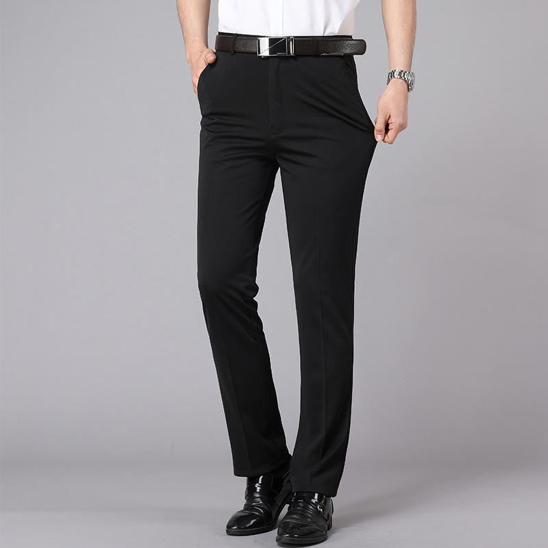 Pantaloni da uomo alti elastici leggeri e Casual da uomo pantaloni eleganti da ufficio elasticizzati e dritti in tinta unita