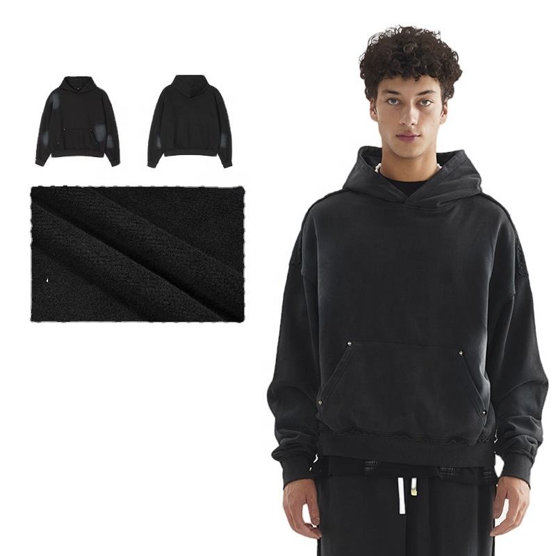 Felpa da Uomo di Alta Qualità, 50% Cotone Anti-Restringimento, Corta e Larga, con Colletto a Cappuccio, Vestibilità Ampia, Invernale, Tinta Unita o Stampata, Pullover Imbottito