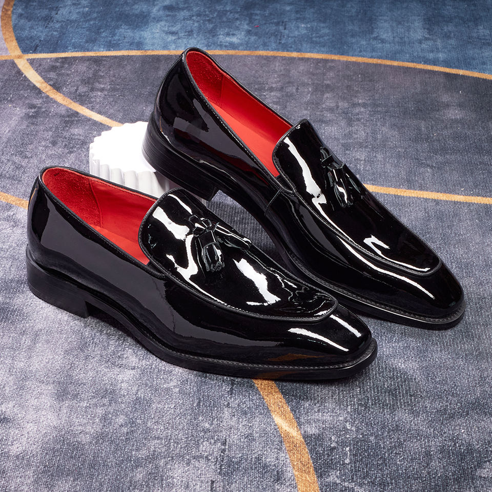 Mocassini da Uomo in Vera Pelle Lucida di Alta Qualità Fatti a Mano - Scarpe Formali da Lavoro Senza Lacci