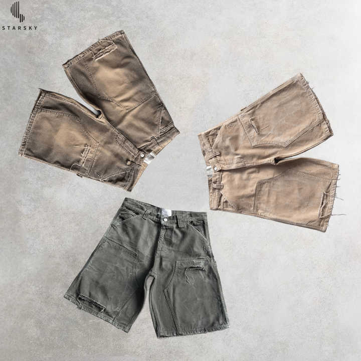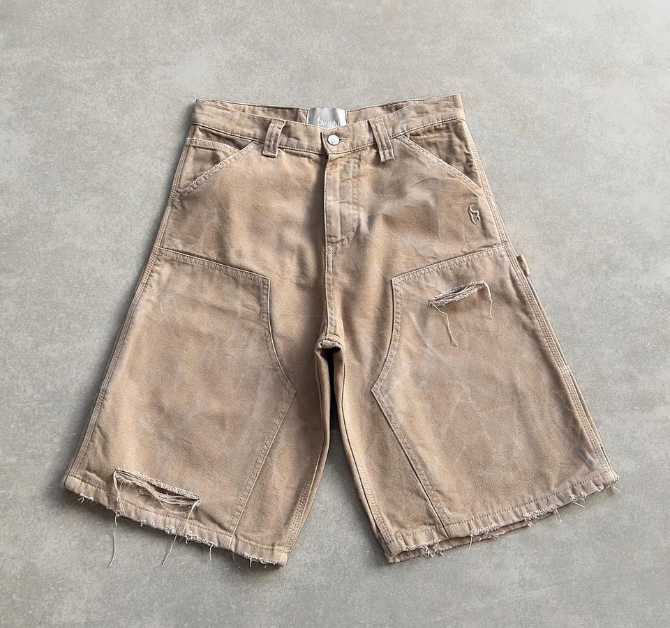 Pantaloncini da Uomo in Denim, Twill e Tela Duck, Stile High Street, Personalizzati, con Lavaggio Distressed, Modello Baggy, per Skate, Lavoro e Cargo