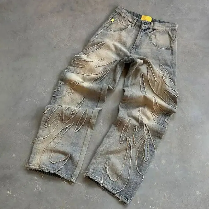 Jeans da Uomo Stile High Street, Jeans Baggy di Alta Qualità Personalizzati, Jeans Neri Ricamati Y2k