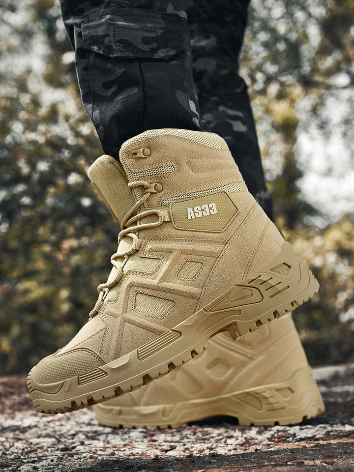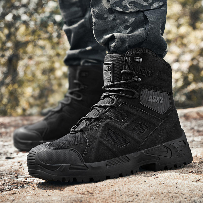 Scarponi Tattici da Uomo Alti Impermeabili per Allenamento ed Escursionismo, Taglie Grandi, Invernali ed Estivi, in Gomma Antiscivolo, in Pelle Scamosciata Leggera