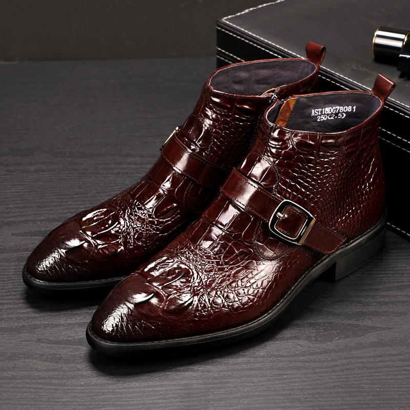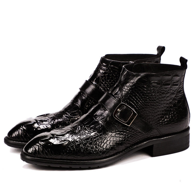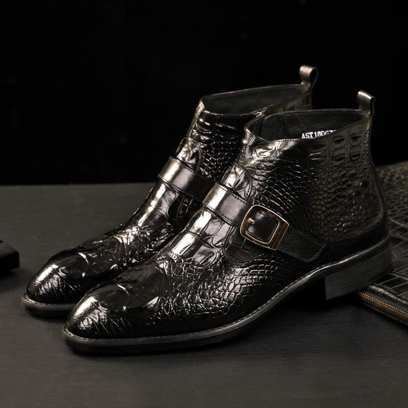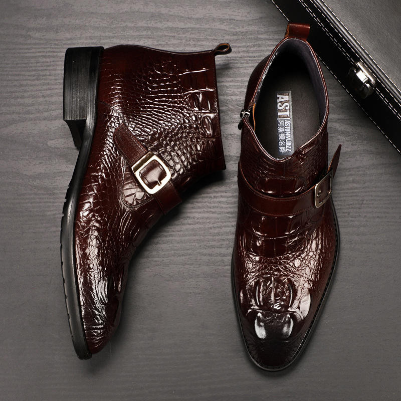 Stivali da Uomo in Pelle con Motivo Coccodrillo, Punta Affusolata, Scarpe Formali da Ufficio in Pelle Bovina