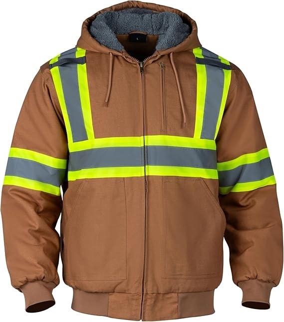 Giacca da uomo con cappuccio da lavoro di sicurezza invernale riflettente ad alta visibilità con fodera in Cashmere