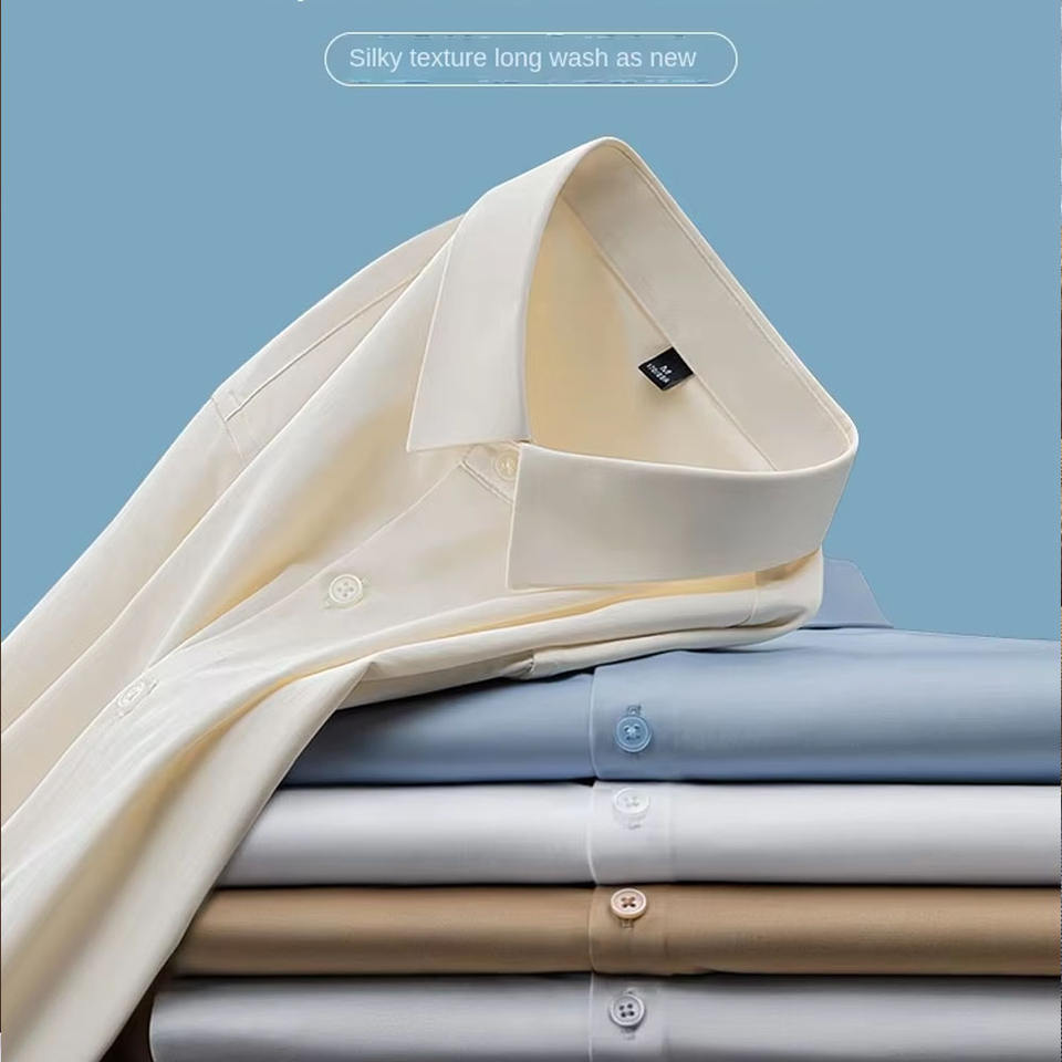 Camicie da Uomo di Alta Gamma Monopetto con Colletto Risvoltato Decorato, Maniche Lunghe in Cotone Mercerizzato Senza Stiratura