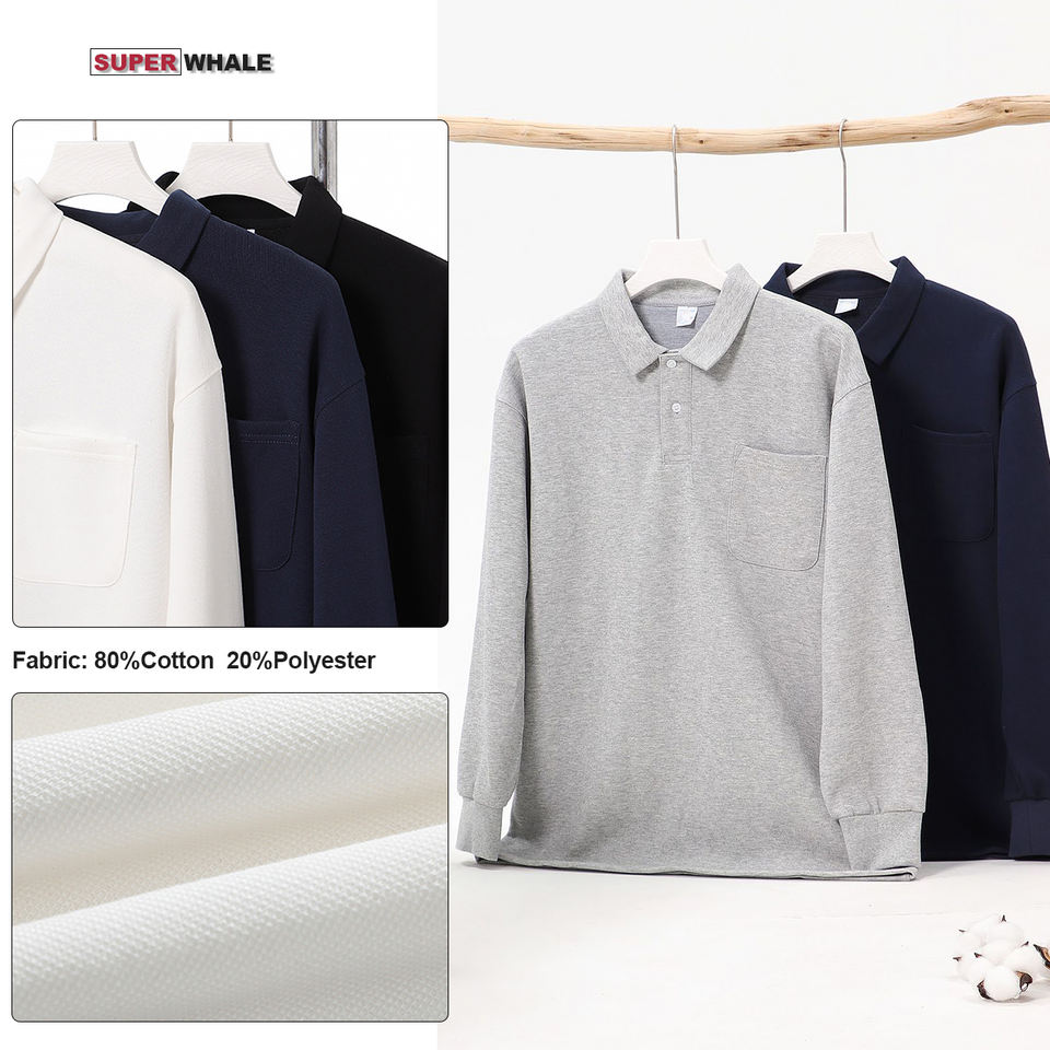 Polo da uomo autunno e inverno di alta qualità in cotone tinta unita a maniche lunghe