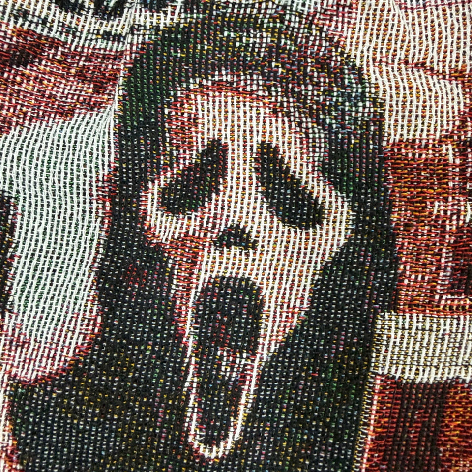 Tessuto in tela da uomo con grafica Ghost Face ispirata ai film horror, traspirante, lunghezza al ginocchio, stile Hip Hop, con coulisse, casual, streetwear, motivo arazzo