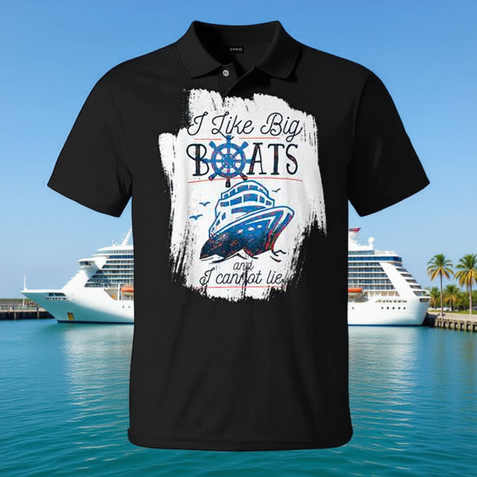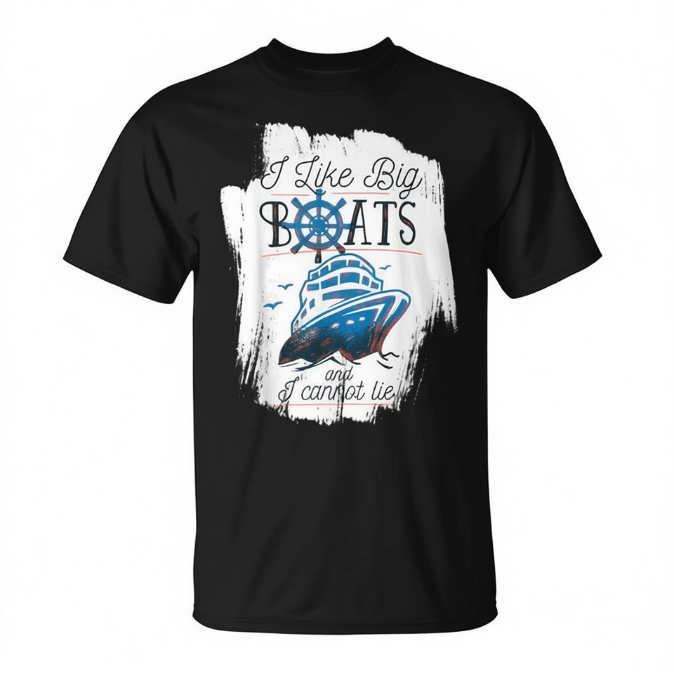 T-Shirt Promozionale da Uomo 'I Like Big Boats and I Cannot Lie' con Motivo Nave da Crociera